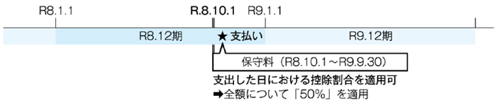 ただし、同法人が免税事業者に対して令和8年10月~令和9年9月までの保守料金を令和8年10月に支払った場合には、「支払日」にて判断するため